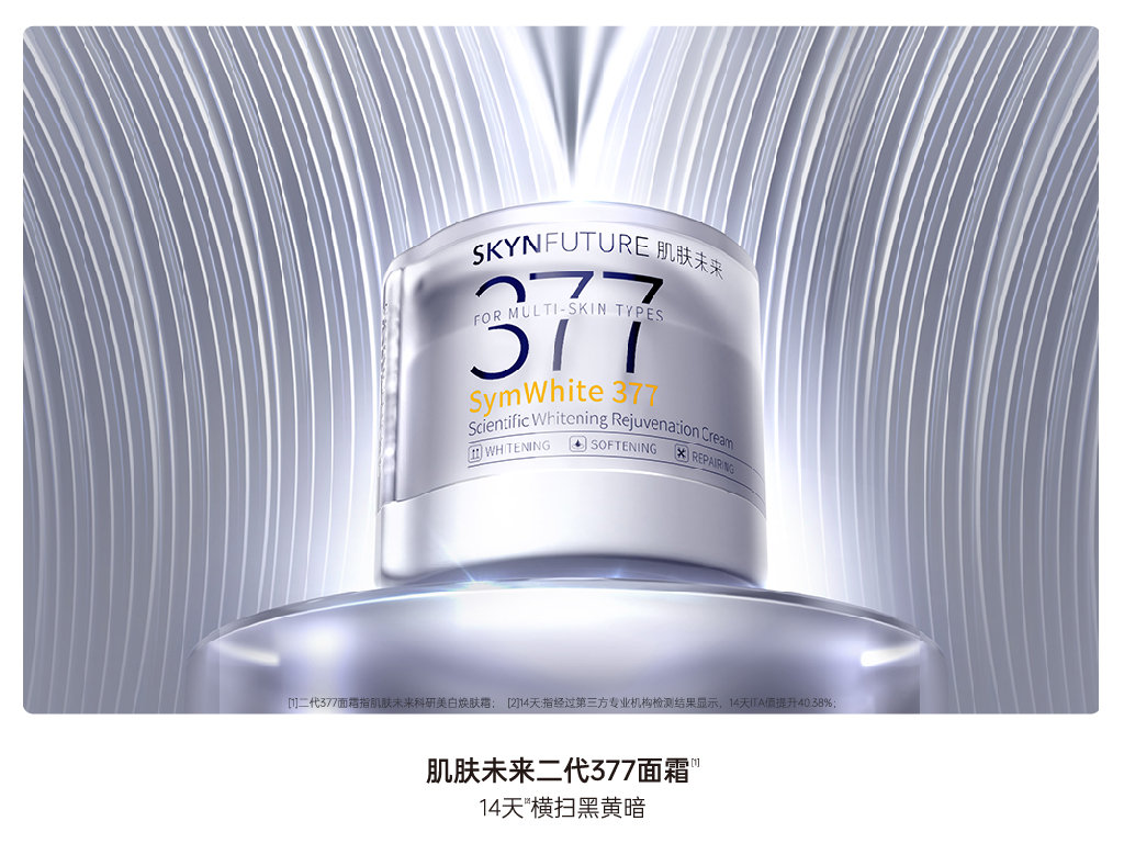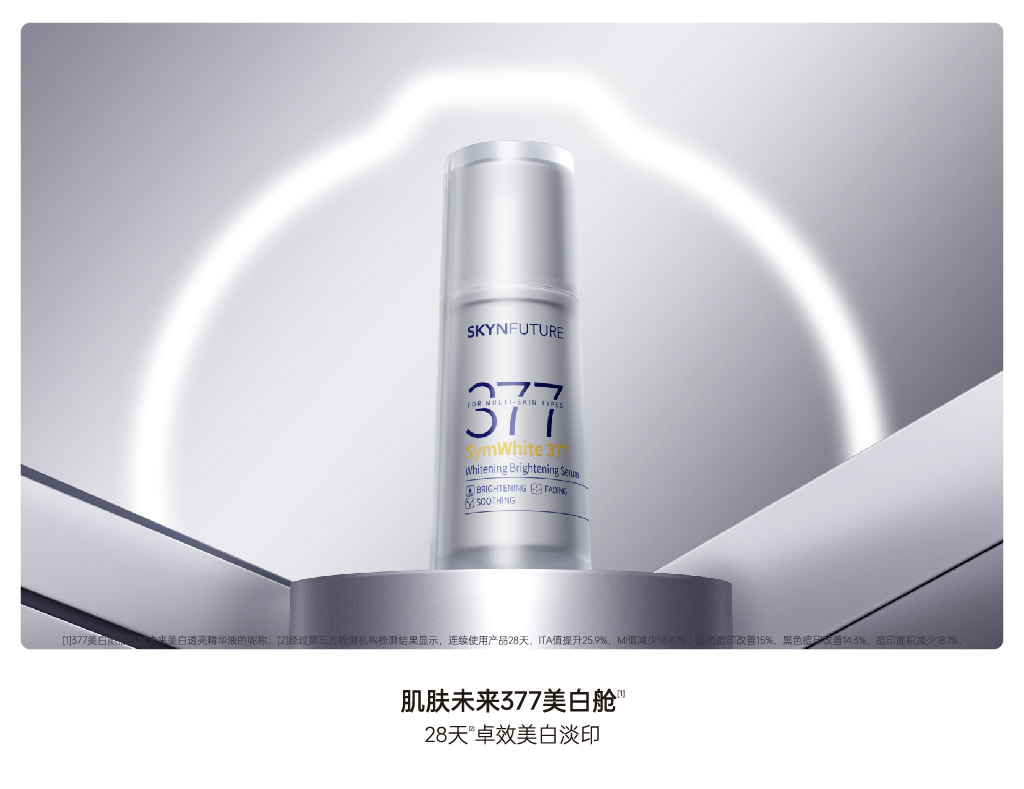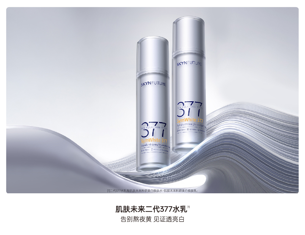 「始于377 超越377」肌膚未來率先與全球頂尖原料供應商德之馨深度共研打造377系列大單品,并成為國內研究推廣377成分的先行者與引領者。